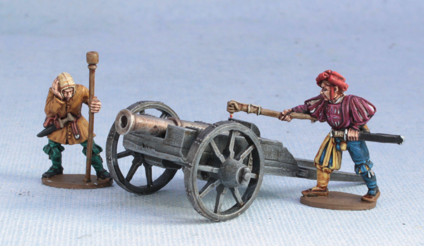 ART 6. Cart Gun and crew. These were used by peasant forces in the German Peasant Wars and maybe useful in other armies. Basically a cannon barrel added to an everyday cart. The pack comprises of cart, barrel, wheels, Landsknecht gunner, assistant and artillery equipment.
