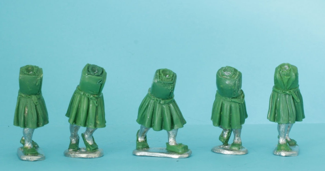 A set of 6 Tudor dollies wearing early 16th century coats, for conversion to longbowmen, halberdiers or pikemen, suitable for most northern European armies of c 1500-1530. These figures are sculpted by Stuart Mulligan, using Oliver’s dollies and were previously sold by Stuart.