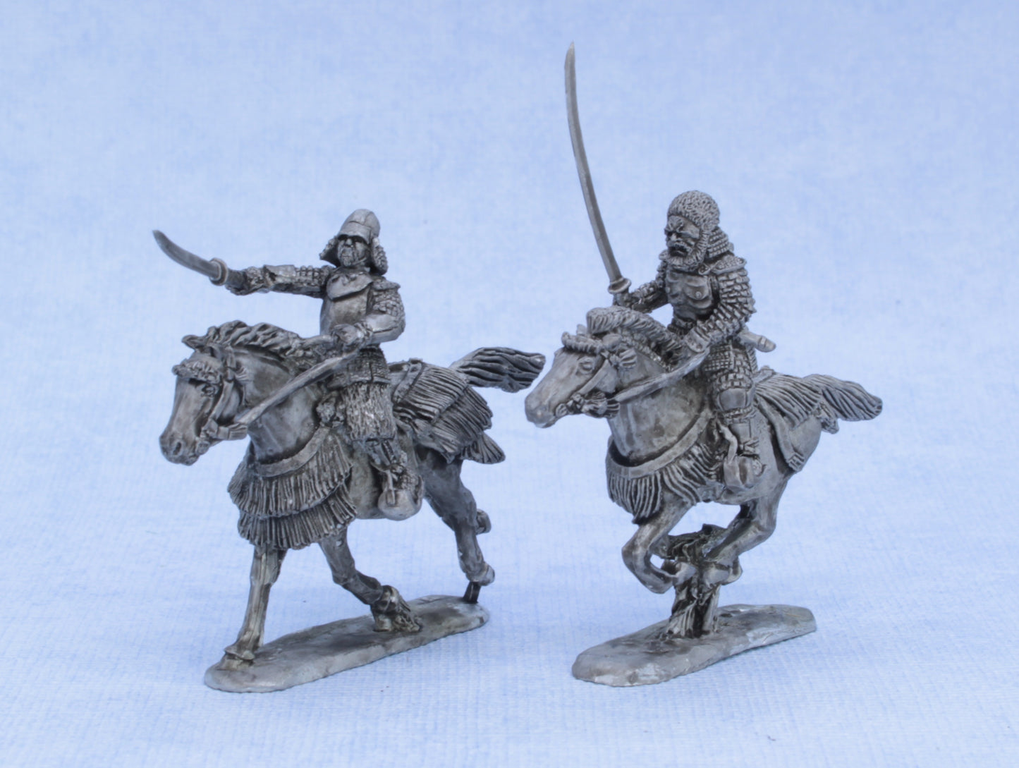 The figure on the right wears a Niu-do armour with scales on the thigh guards and arms. He is carrying a Nodachi, which was used by mounted Samurai for its long reach. This is a very theatrical armour worn by a wealthy warrior who would want the armour to in some way reflect his formidable reputation.