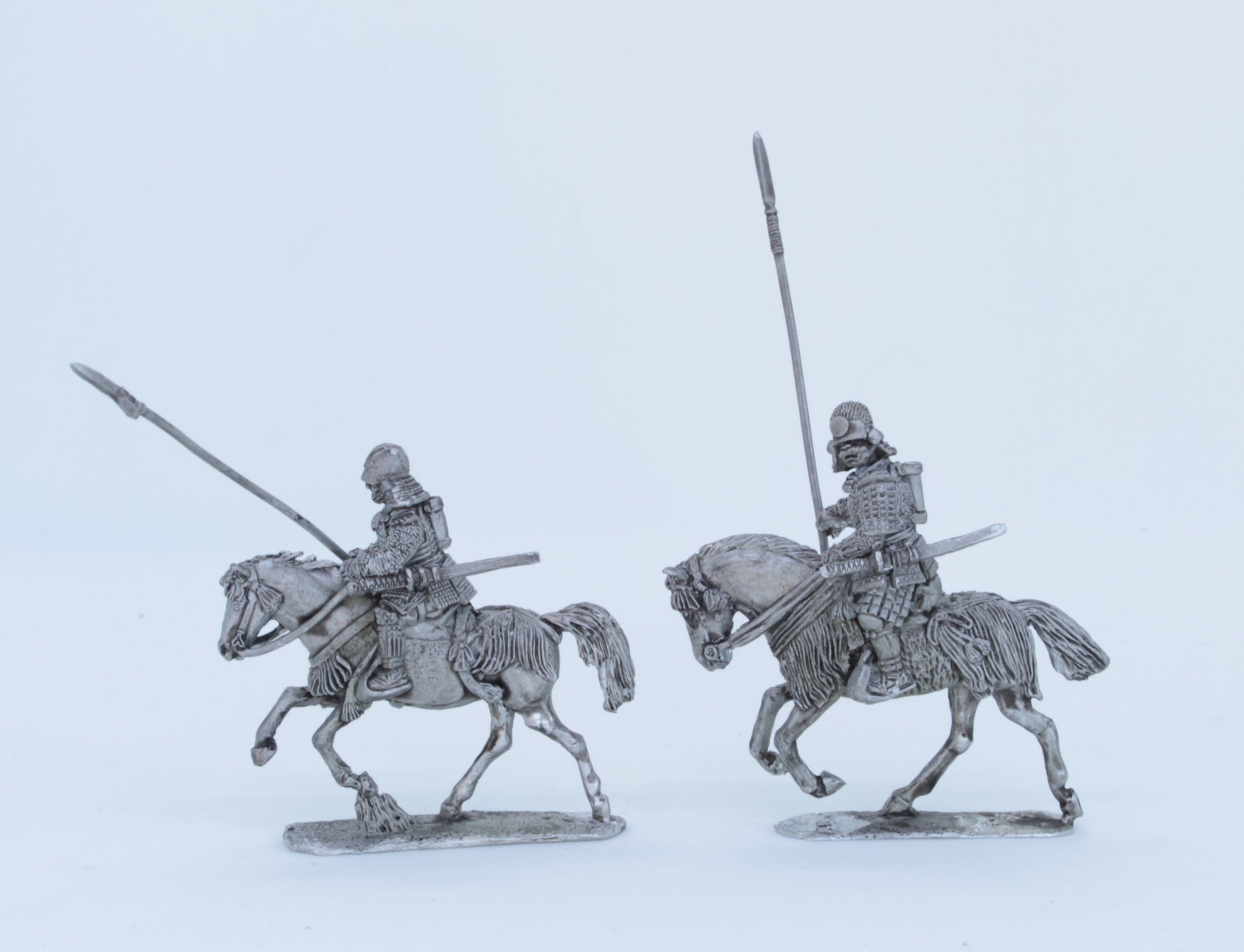 This pack contains 2 mounted samurai with separate heads (which are supplied randomly).